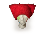 Crocheted cat beanie in vivid red. Extremely soft and cozy.